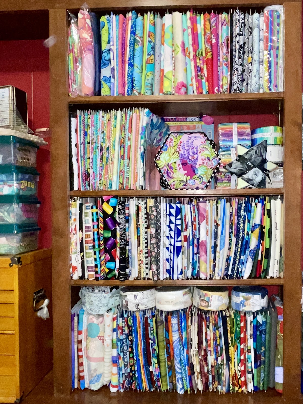 Next up... It was time to restructure my sewing space. I mainly quilt and embroider these days on my machine. My sewing table needs to be ready for cutting everything from quilt to EPP. And it was time to truly organize fabric by something other than "colorish"...