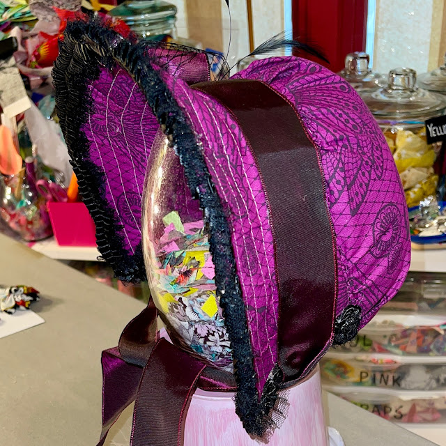 The Little House on the Prairie 50th Anniversary Cast Reunion and Festival is this weekend! I decided to add in a “formal” hat to my weekends costume options, since I will be rewearing same dress and changing out the “extras” to create outfit differences. This was my first haberdashery attempt. Mostly hand stitches, I stitched on my Bernina when I could and used my glue gun for all the finishing touches! #tulapinkfabrics#tulapinkdejavunightshade #victorianbonnet#handmadebonnet
